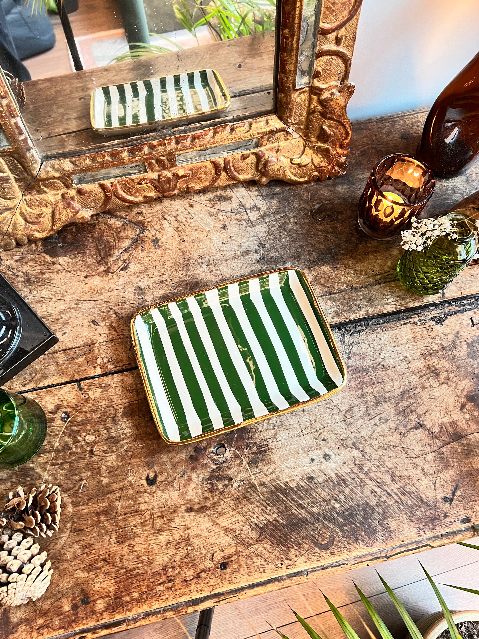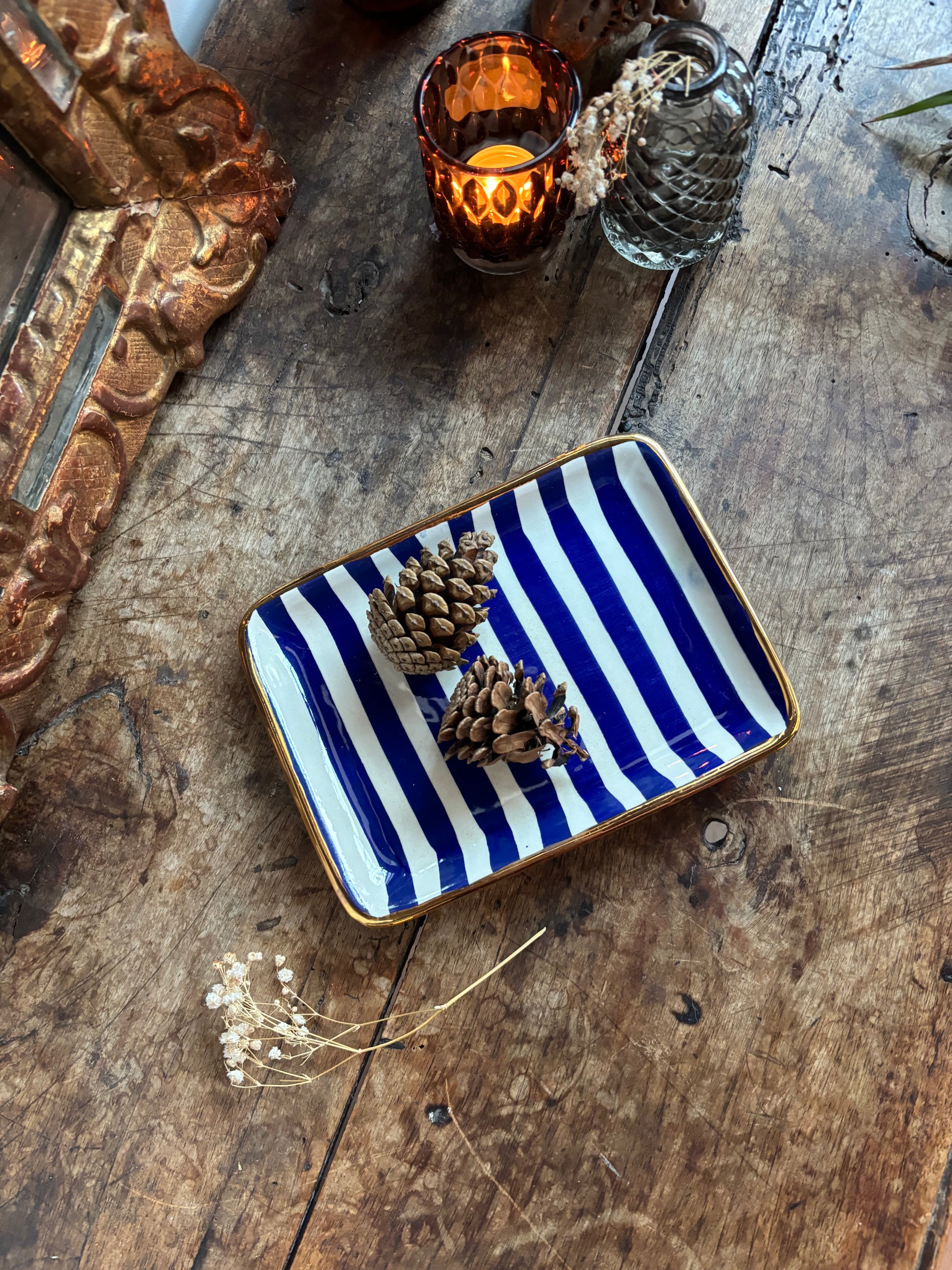 Fabrication artisanale : Façonné à la main à travers plusieurs étapes et trois cuissons, dont une à l’or 12 carats, chaque plateau demande près de dix jours de travail.